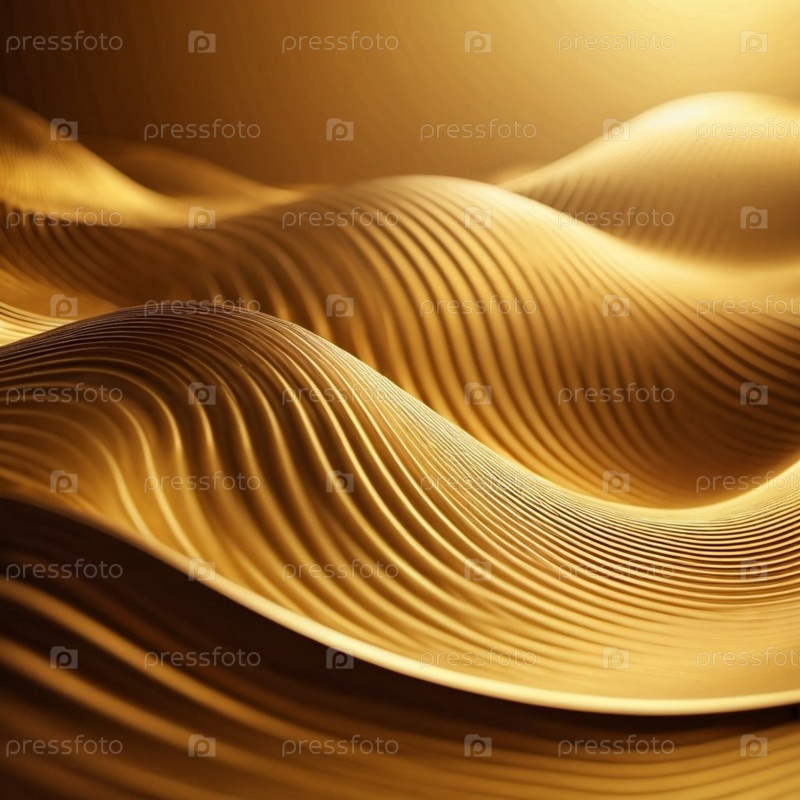 Плавные 3D-волны черного и золотого цветов создают завораживающий абстрактный узор с плавными изгибами и световыми градиентами на темном фоне, вызывающем артистизм и спокойствие. Генеративный ИИ