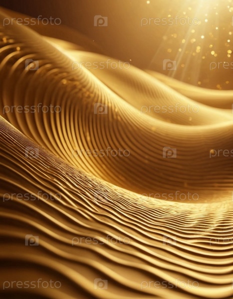 Плавные 3D-волны черного и золотого цветов создают завораживающий абстрактный узор с плавными изгибами и световыми градиентами на темном фоне, вызывающем артистизм и спокойствие. Генеративный ИИ