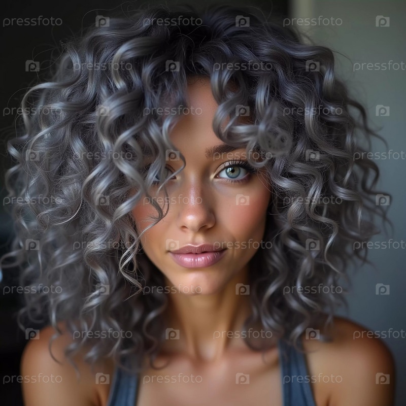 Поразительный крупный план показывает роскошные седые пепельные локоны, сверкающие блеском. Мягкие волны элегантно ниспадают, подчеркивая текстуру и красоту волос в мягком естественном свете. Генеративный ИИ