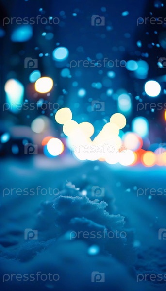 Снежная буря покрыла городские улицы толстым слоем снега, создавая спокойную, но оживленную атмосферу, когда машины едут по обледенелой дороге в сумерках. Дух праздника в праздничный сезон. Генеративный ИИ