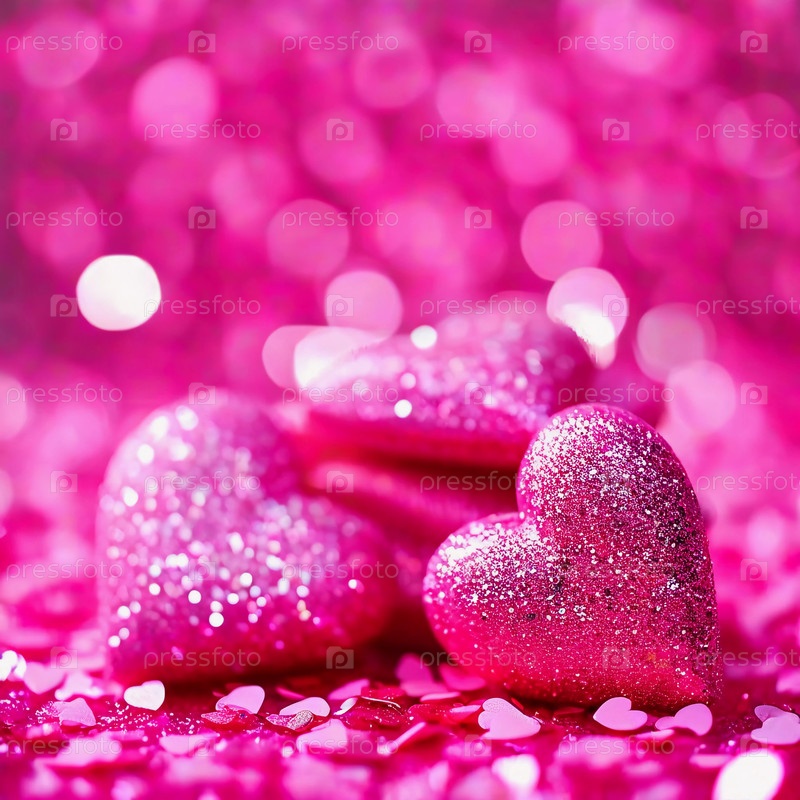 Блестящие розовые сердечки разбросаны по яркому фону, наполненному сверкающими огнями, создавая романтическое настроение для празднеств и торжеств в честь Дня святого Валентина. Генеративный ИИ