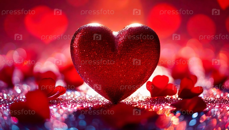 Ярко-красный блеск покрывает фон, украшенный разбросанными сердцами разных размеров, создавая праздничную и романтическую атмосферу, идеальную для особых случаев. Генеративный ИИ