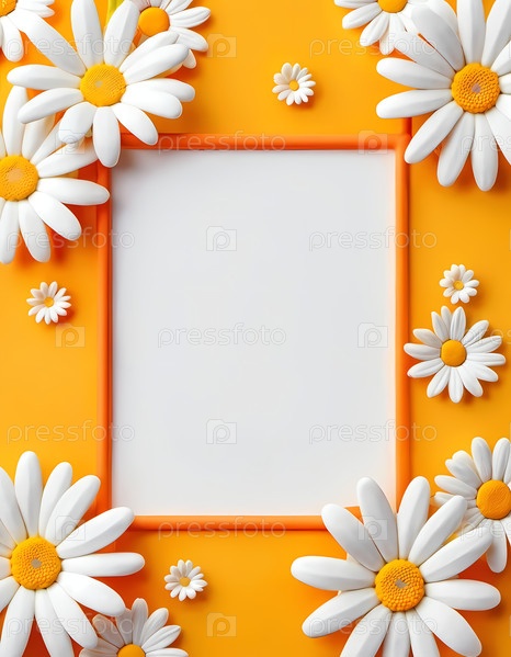 Ромашки белого и оранжевого цвета окружают пустое пространство, создавая веселую атмосферу. Красочный фон пробуждает воображение и предлагает игривый штрих для различных применений
