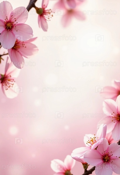 Цветы сакуры изящно украшают нежно-розовый фон, создавая безмятежную атмосферу, которая передает суть весны. Нежные лепестки, купающиеся в мягких оттенках, вызывают чувства обновления и мимолетной красоты, приглашая к созерцанию. Каждый цветок легко танцу