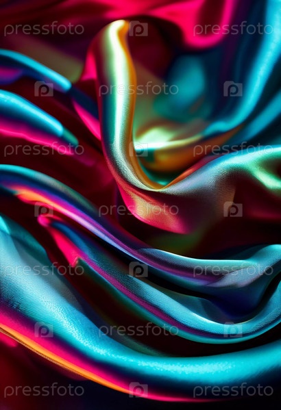 Шелковая ткань ниспадает красивыми волнами, демонстрируя богатую палитру синего, красного и зеленого цветов. Генеративный ИИ