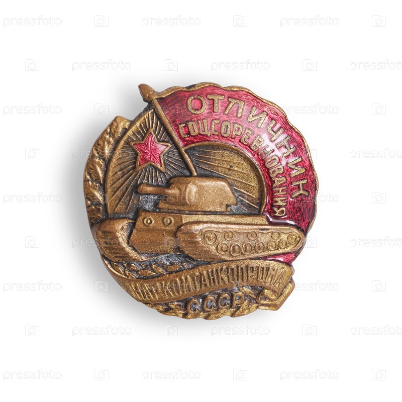 Советский значок 'Народный комиссариат танковой промышленности' (запись на русском языке)