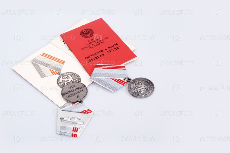 Надпись на медали на русском языке означает 'Ветеран труда СССР'