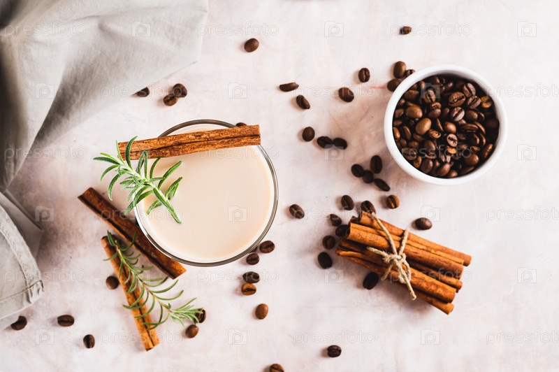Ароматный кофе с розмарином и корицей в стакане на столешнице
