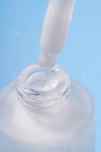 Матовый косметический флакон с пипеткой на синем фоне, упаковка продукта, антивозрастная сыворотка с пептидами, макет косметики, концепция спа