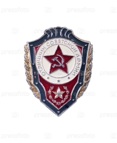 Нагрудный знак Министерства обороны СССР 'Отличник Советской армии'. изолирован на белом фоне с обтравочной маской