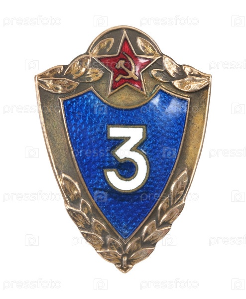 Квалификационный знак классности военнослужащего Вооруженных сил СССР. Специалист третьего класса для солдат и сержантов срочной службы. Изолирован на белом фоне с обтравочной маской
