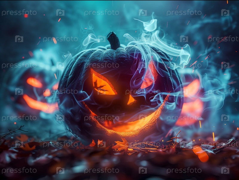 Огненный тыквенный фонарь с клубящимся дымом