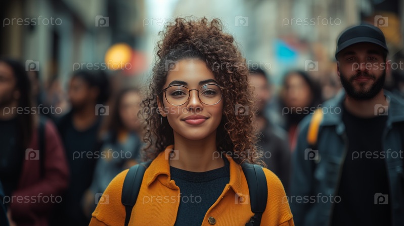 Молодая женщина исследует оживленную городскую улицу