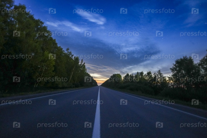 Пустое шоссе в сумерках