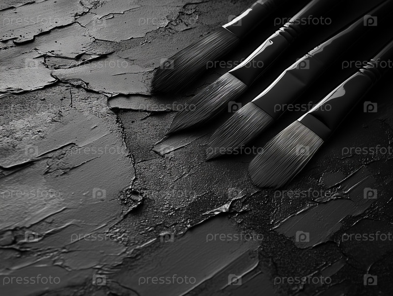 Черные кисти на текстурированной черной поверхности в монохромном режиме