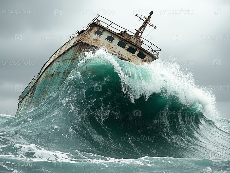 Заброшенный корабль попал в огромную океанскую волну во время шторма