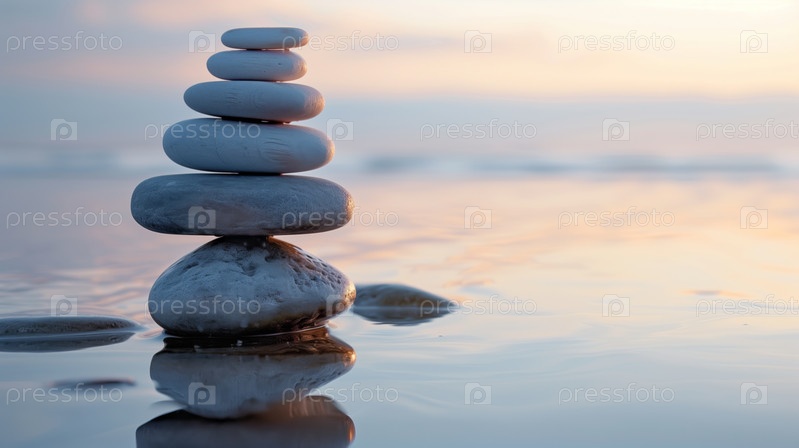 Сбалансированные камни с цветком в спокойной водной обстановке