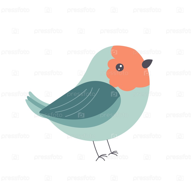 Свежая акваптица с ярко-оранжевым лицом и бирюзовыми крыльями в современном стиле, идеально подходит для креативной весенней графики, декора в мятной тематике или игривых наборов для рисования