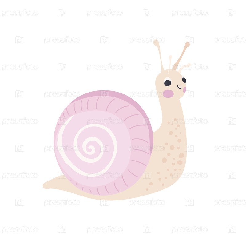 Мягкая белая улитка с румяными щеками и розовой спиральной раковиной, идеально подходит для нежной графики дикой природы, минималистичного детского искусства и иллюстраций на садовую тематику