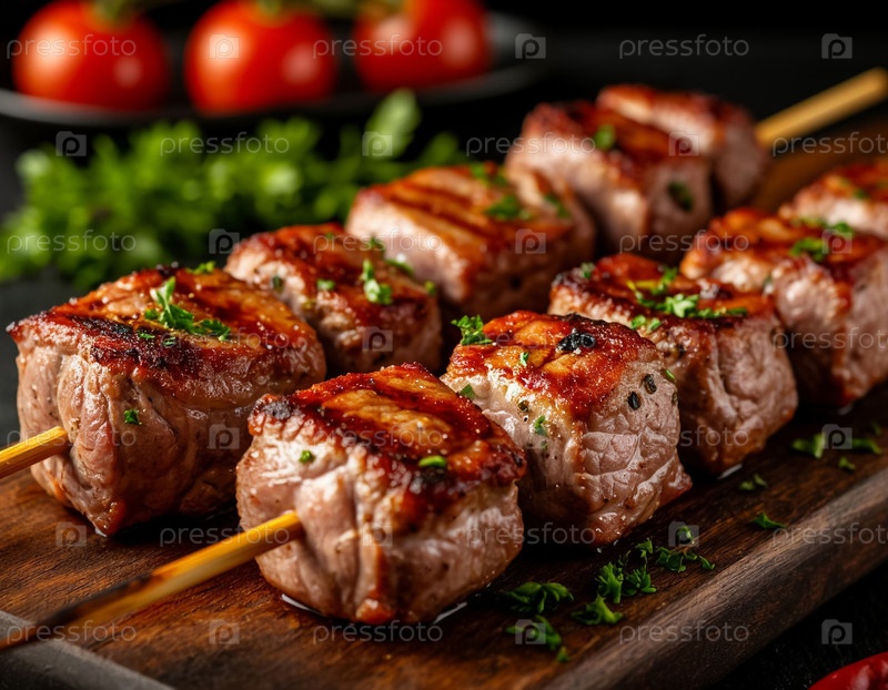 Шашлык из свинины на шампурах, созданный искусственным интеллектом