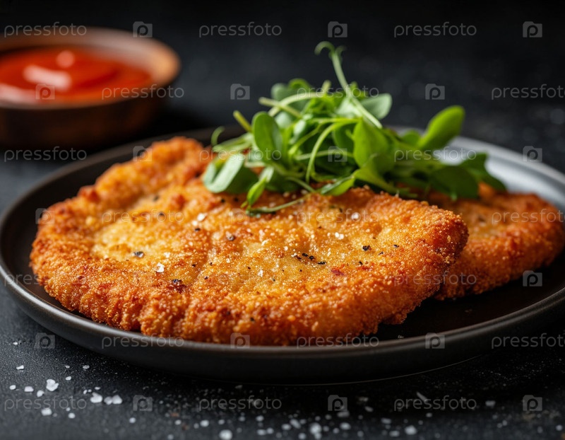 Шницель на тарелке, созданный искусственным интеллектом
