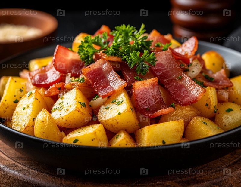 Жареный картофель с беконом и луком, созданный искусственным интеллектом