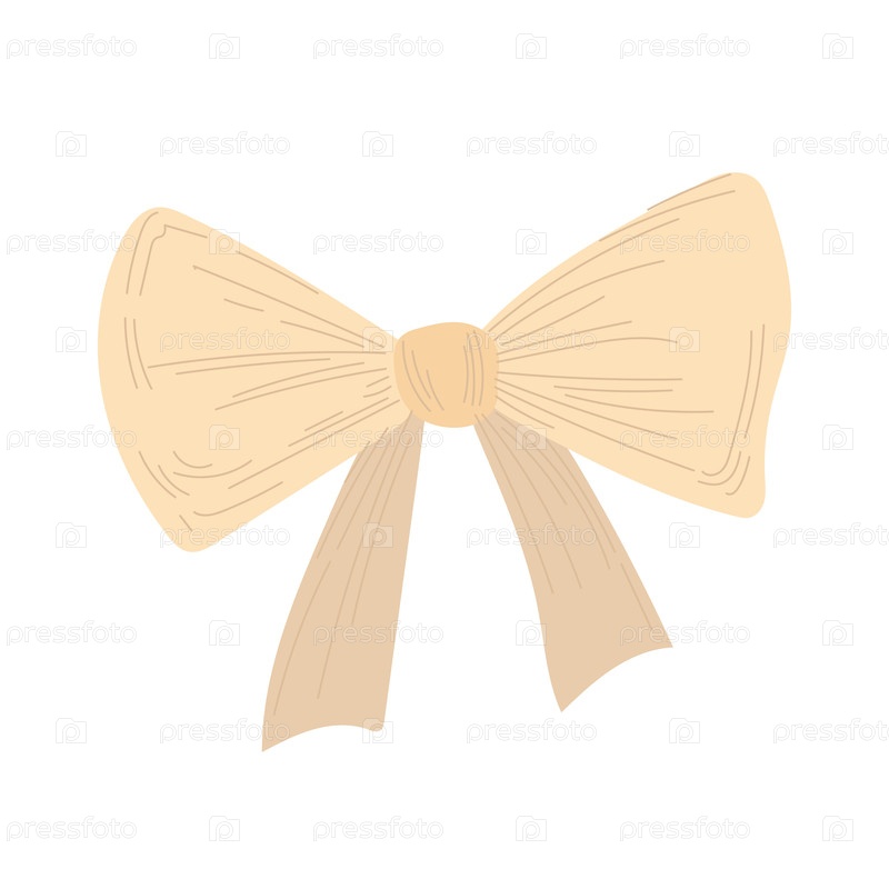 Нарисованный вручную бежевый бант из ленты с мягкой текстурой ткани, идеально подходит для упаковки подарков, свадебного декора или элегантного дизайна поделок. Нейтральные тона для винтажного стиля