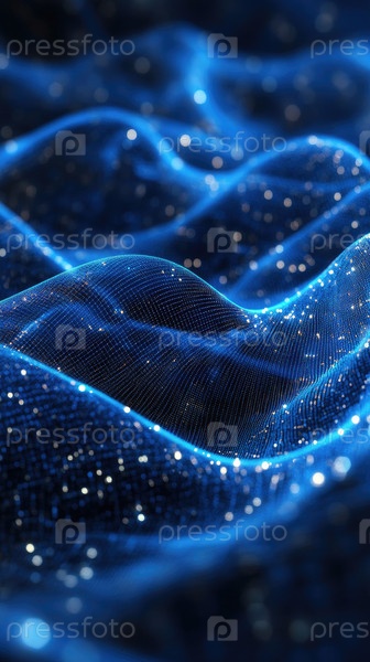 Этот дизайн отличается глубокими синими абстрактными линиями, переплетенными со светящимися каркасными структурами. Неоновые акценты создают ощущение хай-тека, демонстрируя эффект цифровой сетки, которая является гладкой и современной