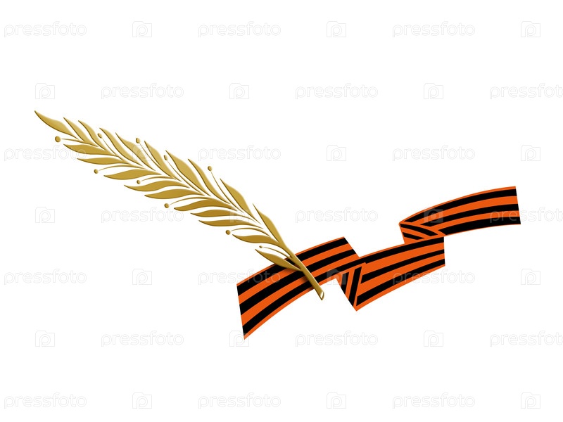 Векторная композиция с георгиевской лентой и лавровой ветвью на белом фоне