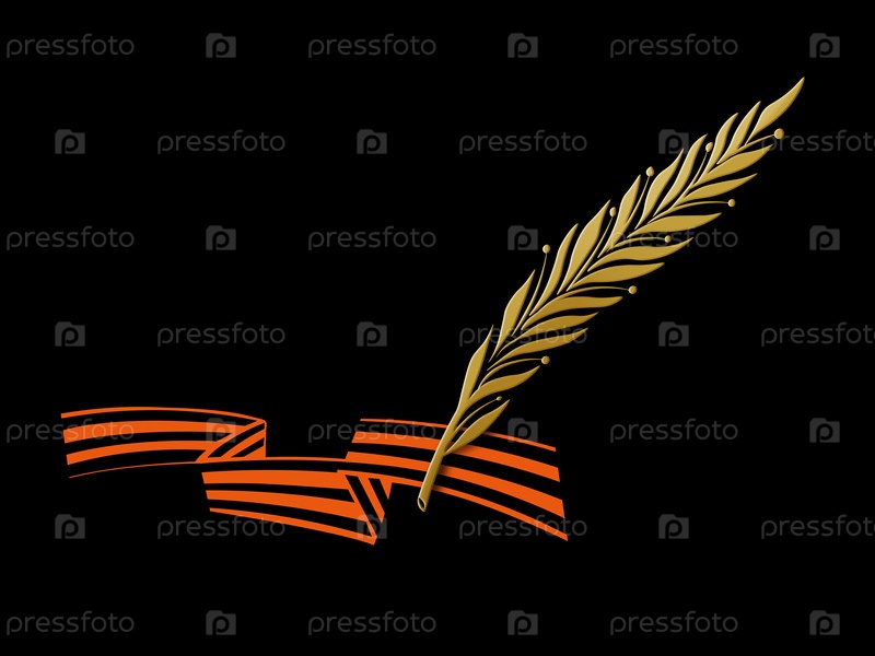 Векторная композиция с георгиевской лентой и лавровой ветвью, изолированными на черном фоне