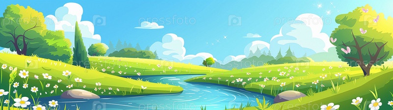 Фон большого формата с весенним и летним пейзажем. Пробуждение природы