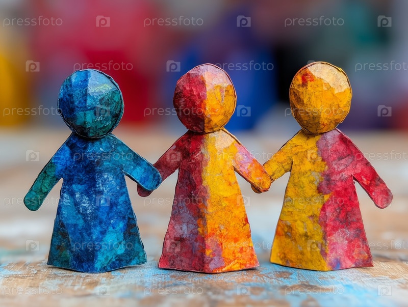 Красочные бумажные фигурки, держащиеся за руки на деревянной поверхности