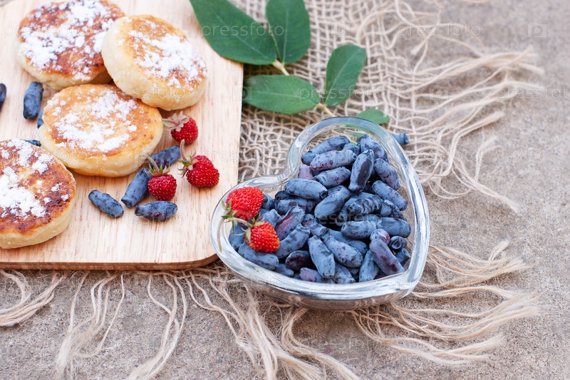 Ягоды жимолости на бетонном фоне