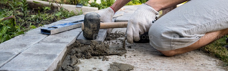 Укладка брусчатки на цементный раствор. Укладка садовой дорожки из плитки. Самостоятельная укладка бетонной тротуарной плитки во дворе дома. сделай сам. Сделай сам