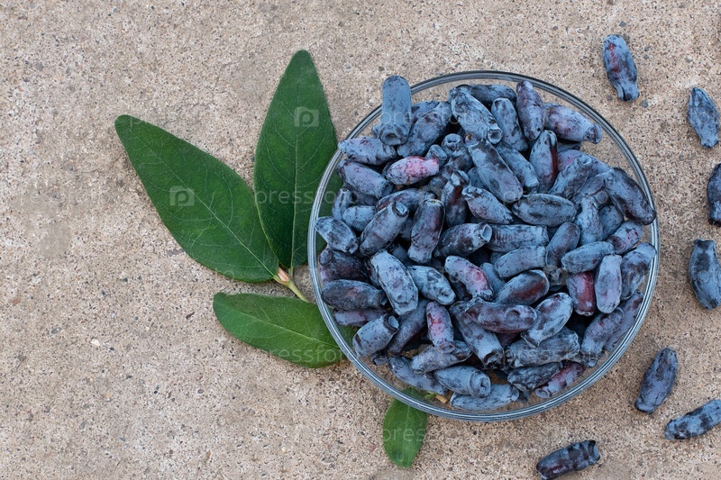 Ягоды жимолости на бетонном фоне