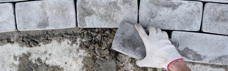 Укладка брусчатки на цементный раствор. баннер. Укладка садовой дорожки из плитки. Самостоятельная укладка бетонной тротуарной плитки во дворе дома. сделай сам. Сделай сам