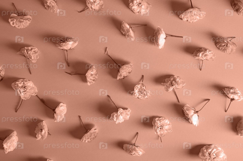 Цвет года 2025, .мокко мусс. нежные пастельно-розовые розы на розовом фоне. Цветочная рамка из розовых распустившихся цветов