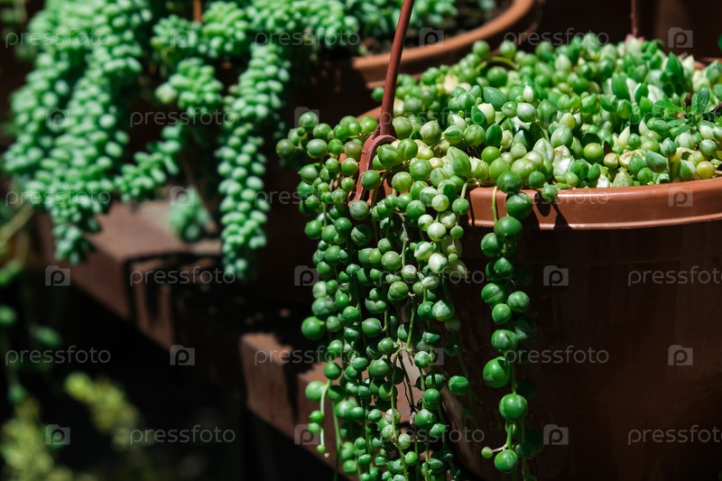 Свисающие нити ветки Seneciorowleyanus. Curio, Asteraceae, ампельное растение, почвопокровное растение
