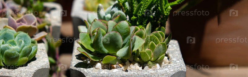 Суккуленты в бетонных горшках. Коллекция горшечных растений. Продажа растений, саженцев для дома