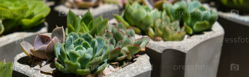 Суккуленты в бетонных горшках. Коллекция горшечных растений. Продажа растений, саженцев для дома