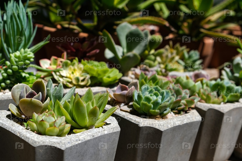 Суккуленты в бетонных горшках. Коллекция горшечных растений. Продажа растений, саженцев для дома