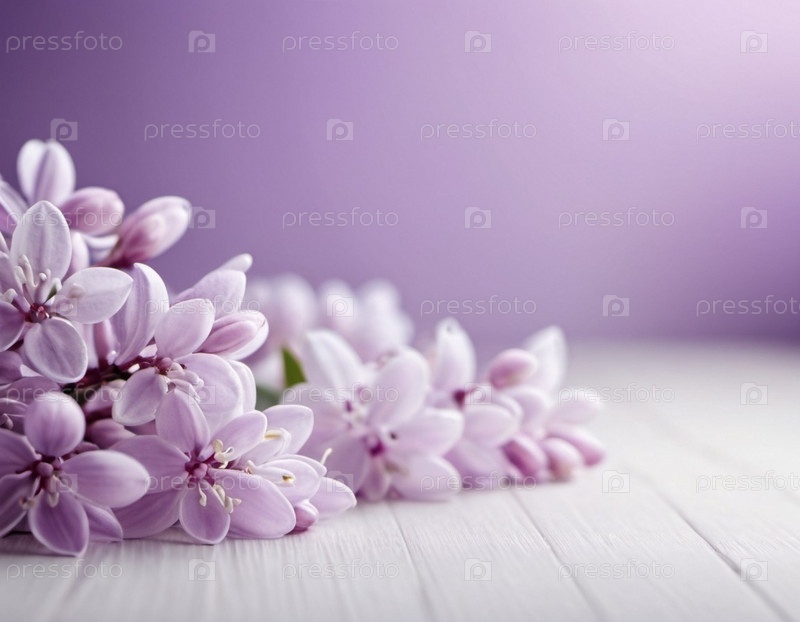 Снимок нежных сиреневых цветов, лепестки мягкие, пастельно-фиолетовые и белые, на размытом фоне. Изображение запечатлело сложные детали цветков, демонстрируя их нежную красоту. AI