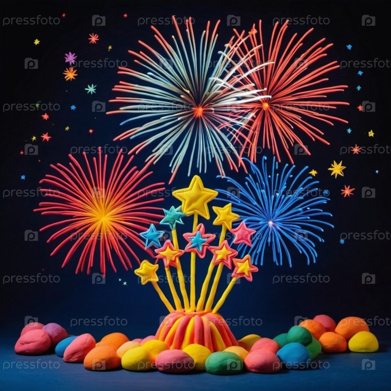Яркое представление фейерверков освещает ночное небо. Большие вспышки света освещают темный холст выше, создавая завораживающее зрелище цвета и движения. Сгенерировано ИИ. Праздничный фон