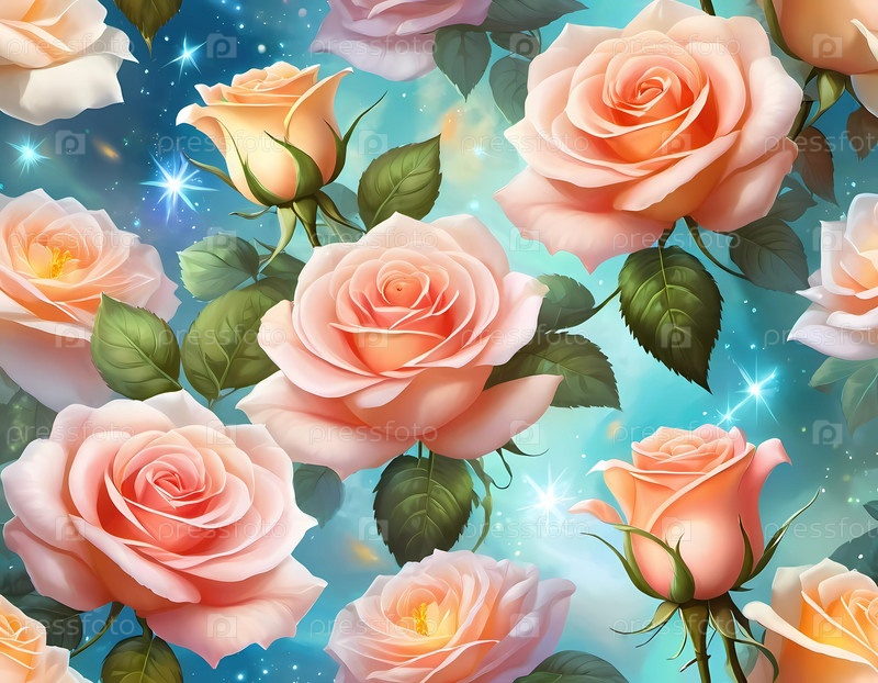 Яркая романтическая картина представляет собой пышную композицию из красиво цветущих роз разных оттенков, запечатлевшую сущность любви и природы в красочной обстановке сада при дневном свете. Генеративный ИИ