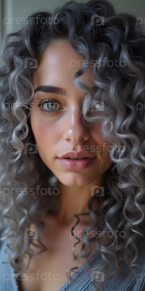 Поразительный крупный план показывает роскошные седые пепельные локоны, сверкающие блеском. Мягкие волны элегантно ниспадают, подчеркивая текстуру и красоту волос в мягком естественном свете. Генеративный ИИ