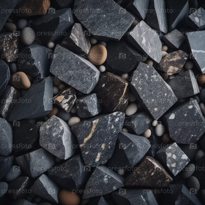 Сложные узоры из темной гранитной крошки, освещенные тонким светом, создающим спокойную и элегантную атмосферу. Черный измельченный минерал сверкает. Боке или капли. Генеративный ИИ