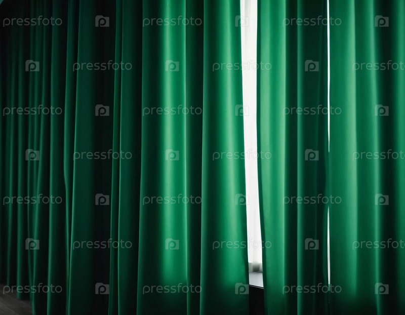 Штора с мягкими плавными струящимися складками. Глубокий зеленый цвет и роскошная фактура создают драматичную и элегантную атмосферу. Декор и дизайн интерьера. Дорогая штора из богатой ткани. AI
