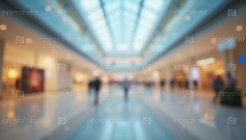 Оживленный торговый центр имеет просторный, светлый коридор, заполненный покупателями. Витрины магазинов выстроились по обе стороны, создавая живую и привлекательную среду для всех посетителей. Расфокусированный вид. ИИ