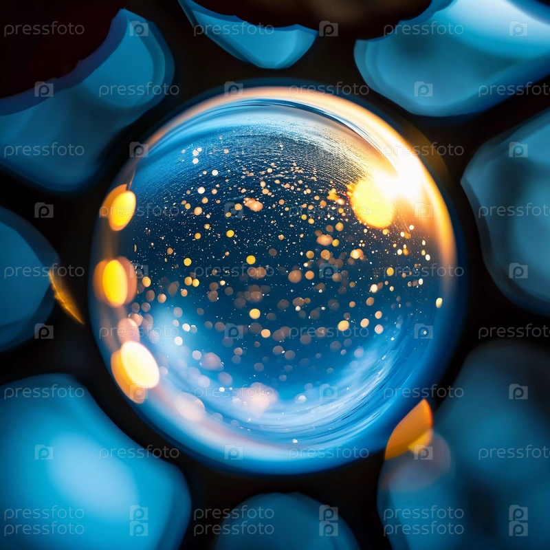 Абстрактный круг демонстрирует завораживающую смесь мерцающих частиц и ярких цветов. Свет отражается внутри, создавая захватывающий визуальный опыт, полный глубины и интриги. Генеративный ИИ