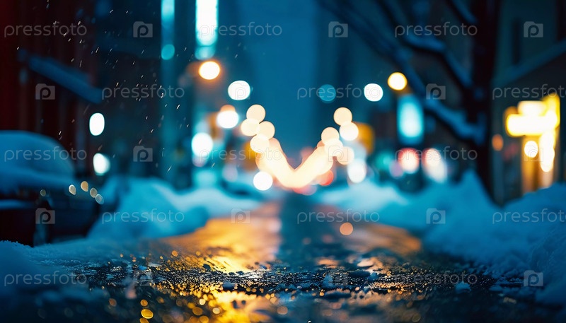 Снежная буря покрыла городские улицы толстым слоем снега, создавая спокойную, но оживленную атмосферу, когда машины едут по обледенелой дороге в сумерках. Дух праздника в праздничный сезон. Генеративный ИИ